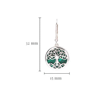 Shanore’s Green Malachite Sterling Silver Tree of Life Drop Earrings remind the wearer to grow inward and outward. Green malachite symbolizes posit...