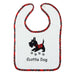 Embroidered Bib - Scottie. Terry bib with Scottie Dog and Tartan trim. 25cm x 35cm.
