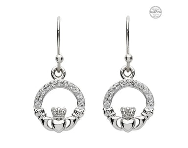 The stunning detail of these lovely Claddagh earrings is mesmerizing, as are the bright crystals from Swarovski that create an elegant circle, endi...