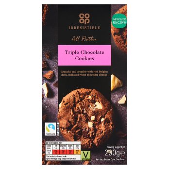 Best Before Date is March 2nd, 2026 All Butter chocolate cookies with Belgian dark, milk and white chocolate chunks.