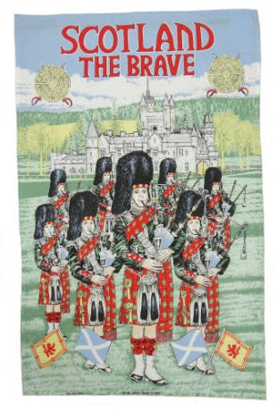 $10.95| /Scotland the Brave Tea Towel Pipe band in front of a Scottish Castle. All our tea towels are 100% cotton. Approximate sizes are 73cm x 47cm.