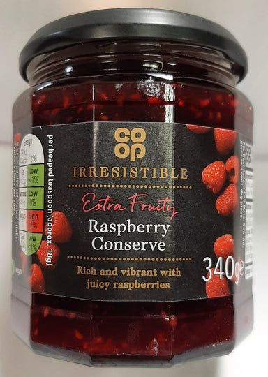 Best Before Date is February 28th, 2027 Co Op Irresistible Extra Fruity Raspberry Conserve Rich and vibrant with juicy raspberries.