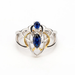 Materials: Rhodium Sterling Silver and 18k Vermeil with Lab Grown Sapphire (Marquise 8mm x 4mm, Pear 4mm x 3mm)