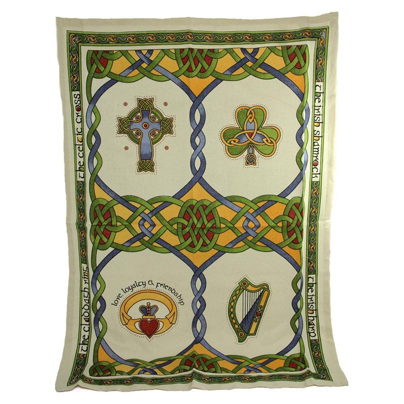 ô˜This Set of Kitchen Textile designs was inspired by 9th century ancient Celtic manuscripts and the four emblems of Ireland, the shamrock, the harp, the high cross and the Claddagh ring. Each is made from 100% cotton.