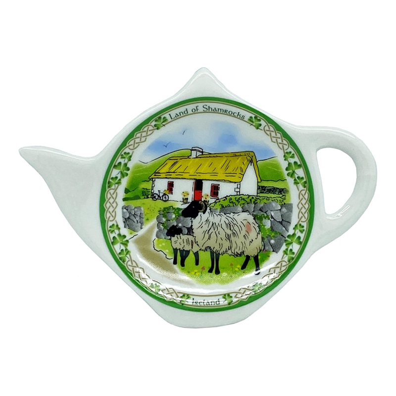 This bone china teabag holder depicts a thatched cottage with sheep sheltering behind a typical west of Ireland stone wall. The beautiful, timeless image is a charming way to bring a bit of Ireland's iconic landscapes into your home.