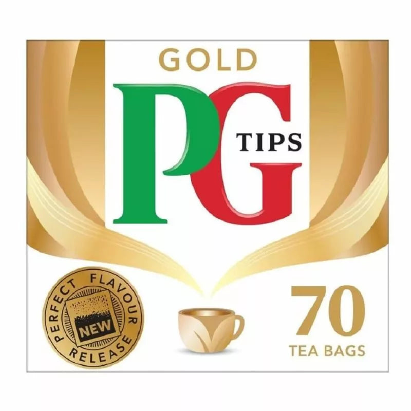 Zoom icon Click to expand Tap to zoom Chevron down icon Chevron down icon PG Tips Gold 70 Tea Bags Save Liquid error (snippets/product-badge line 32): Computation results in '-Infinity'% $10.99 | / Availability: Translation missing: en.general.icons.icon_check_circle icon 54 in stock, ready to be shipped 1 2 3 4 5 6 7 8 9 10+ Quantity Chevron down icon Quantity Add to cart Spinner icon This item is a recurring or deferred purchase. By continuing, I agree to the cancellation policy and authorize you to charge my payment method at the prices, frequency and dates listed on this page until my order is fulfilled or I cancel, if permitted. Notify me when back in stock Email address Email me when available Best Before Date is October 1st, 2026 Ingredients Nutritional Information